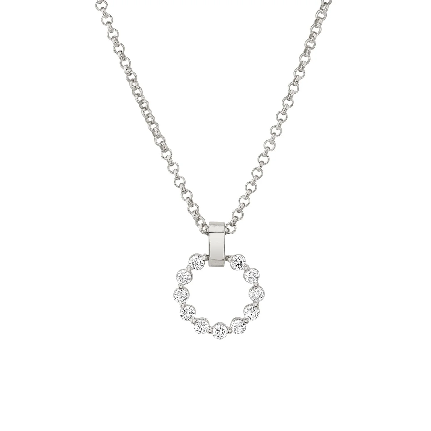 Make an undaunted ethereal statement everyday. The Small Cloud Pendant features the collection's iconic shared prong motif and is suspended from a smooth gold bar bail to capture the CLOUD Collection's defining swinging motion. Delicate at 12mm wide, it's the perfect size for a little extra sparkle on the regular.