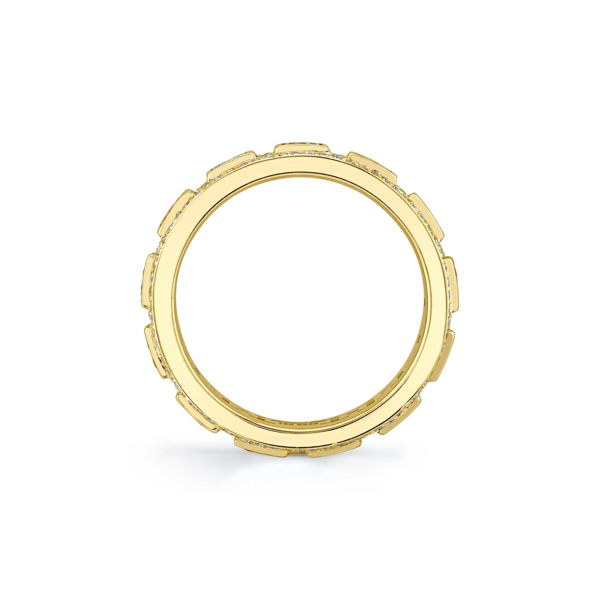 Our Europa Geo Pavé Band is crafted with exquisite attention to detail, this band features 2.66 ctw round diamonds in a pave setting, radiating a sparkling brilliance that is sure to turn heads.