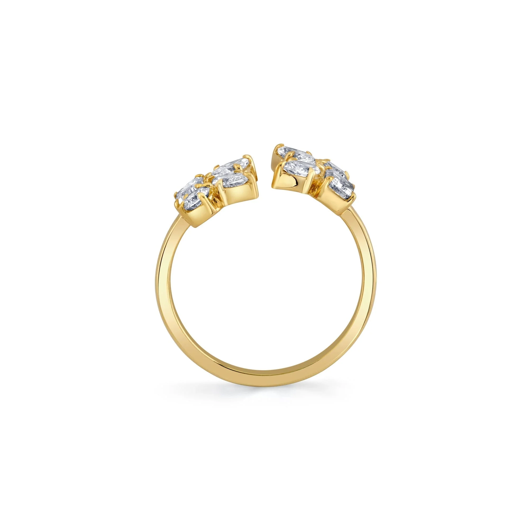 Expertly designed, the Montage Cluster Bypass Ring showcases two stunning diamond clusters featuring emerald, marquise, and round cut diamonds. With exquisite craftsmanship, this ring exudes sophistication and luxury, making it the perfect accessory for any occasion. Elevate your style with this captivating piece.