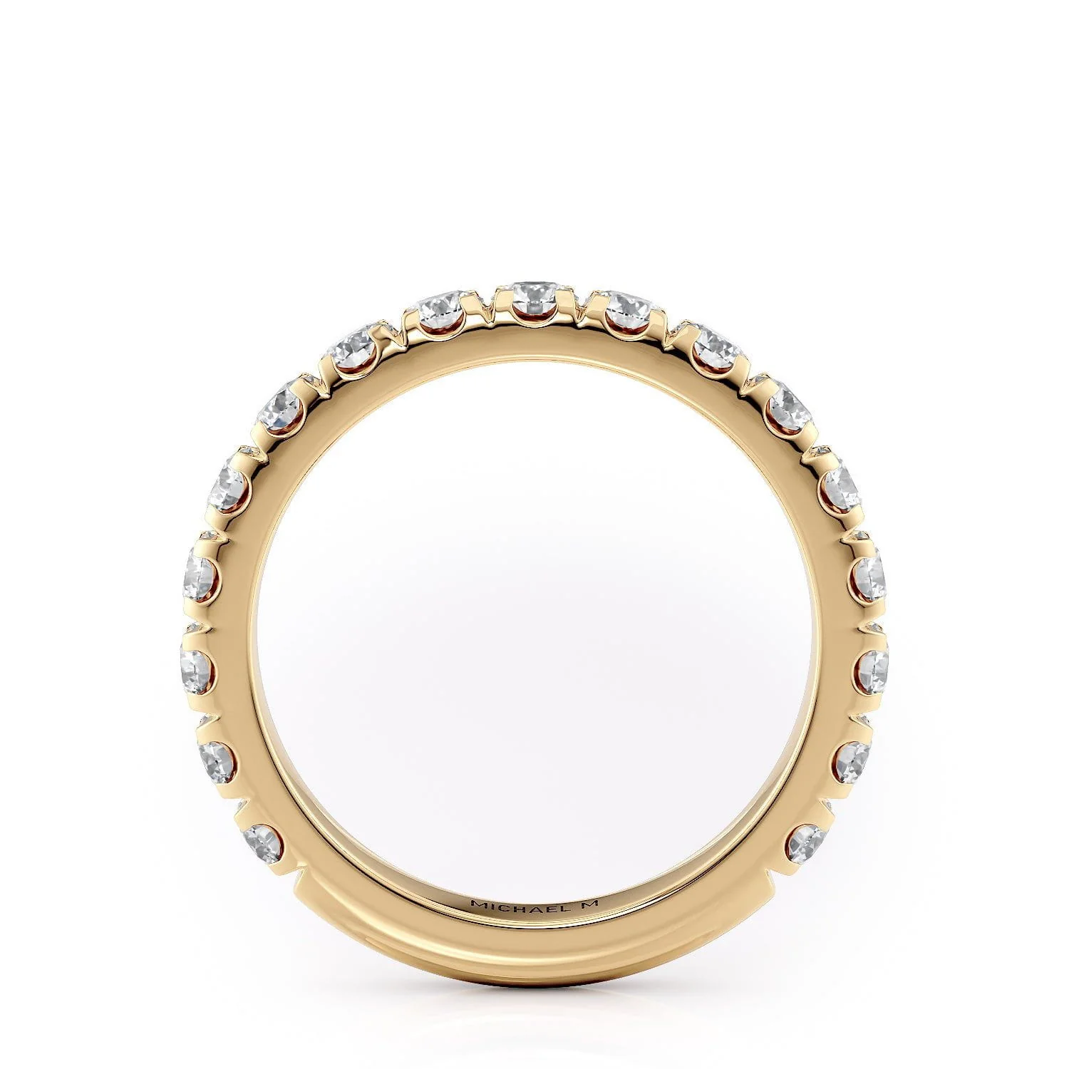 This wedding band is meticulously designed with premium diamonds, offering a classic and refined accent to your wedding ensemble. Featuring a continuous row of diamonds that extends three-quarters around the band, it stands as an ideal selection for enduring elegance.